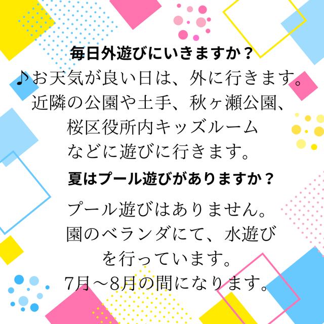 園見学での質問コーナーでよく聞かれる内容をピックアップして、ブログにもあげます。
