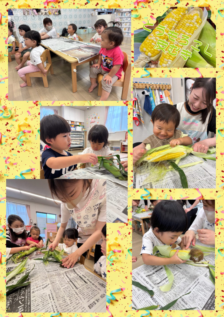 【アルページュ保育園大和田】食育/とうもろこし皮むき🌽