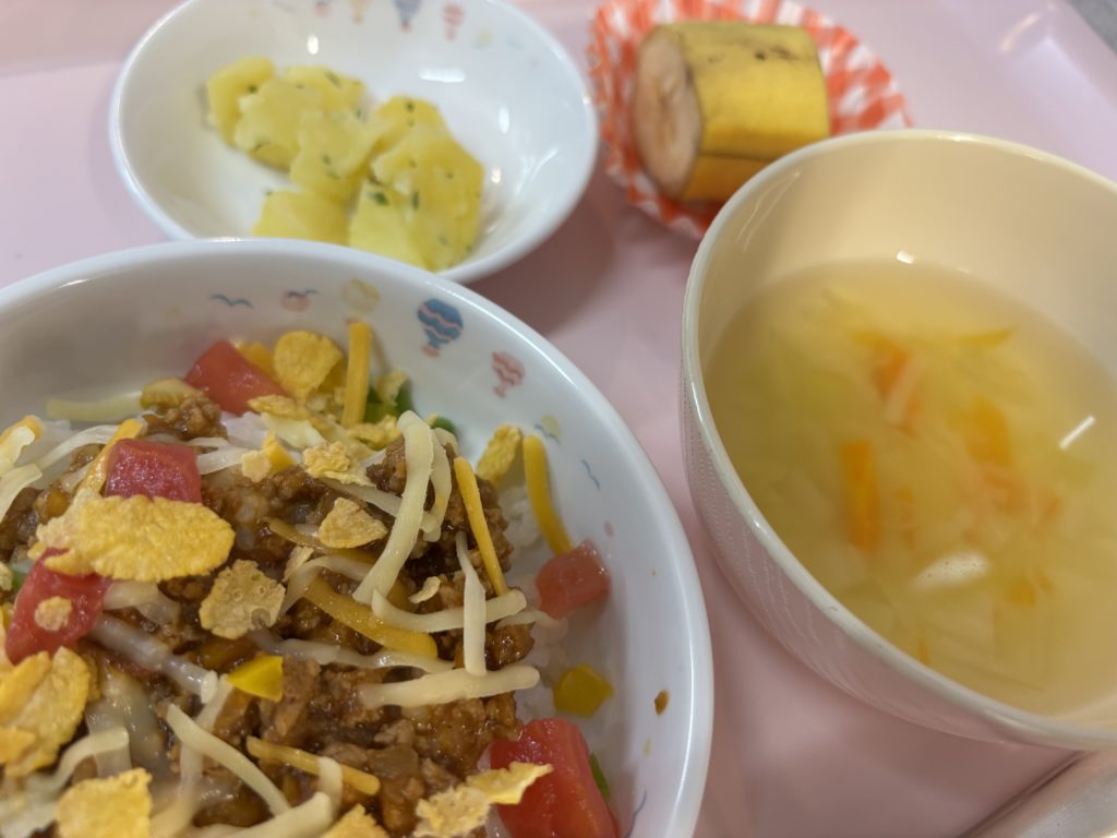 タコライス、野菜スープ、粉ふきいも、バナナ